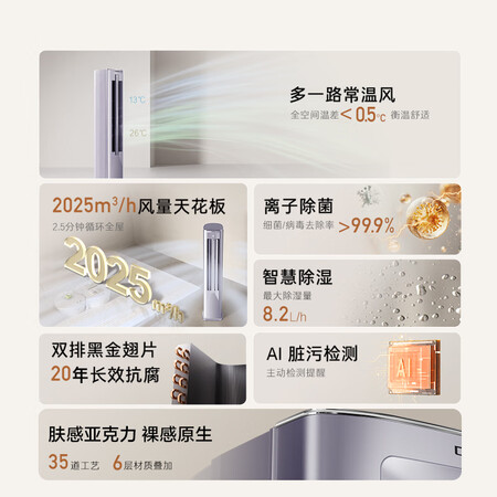卡萨帝(Casarte)星悦尊享版空调 3匹 双路送风 离子除菌空调柜机一级能效 CAP7225C30(81)U1国家补贴以旧换新到手价格11099元。