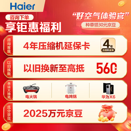 空调海尔KFR-35GWA6HAA81U1(轻奢金)安装师傅介绍的很清楚,还有什么注意事项都会告知,安装过程看着也是很严谨,空调不错,整体是挺满意的。空调风劲很大,制冷效果很好,按装师傅热情,好静音。空调很给力。第二次购买了,安装师傅货还没有送到就提前联系我,当天到货,当天安装,一级能效标识清晰,性价比很高。安装快捷,风量大,制冷快,挺凉快的,颜值也行,价格实惠。老品牌了,款式简单高级,也不占位置,声音很小没什么噪音,制冷制热效果都非常不错,趁着有活动赶紧下单了
