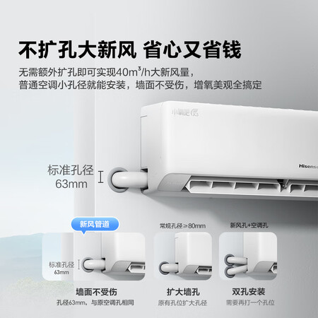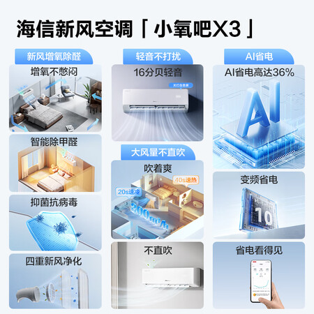 海信(Hisese)大1.5匹 小氧吧X3 增氧新风 AI省电轻音不打扰 大风量国家补贴20%挂机空调KFR-35GWX300U-X1到手价格2289.8元。