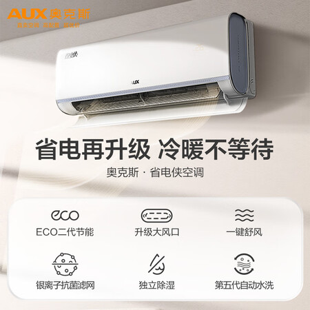 奥克斯(AUX)大1.5匹 省电侠大导 国家补贴 新一级空调挂机 家用变频冷暖 ECO节能40%KFR-35GWBpR3EQS1(B1)到手价格2199元。