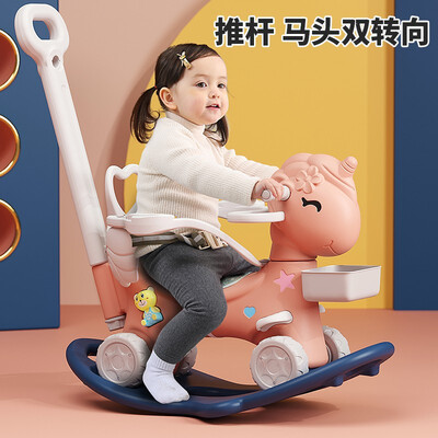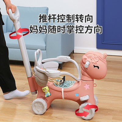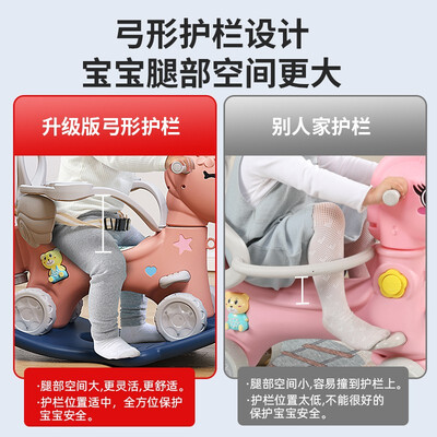 【超大号推杆可转向】摇摇马木马儿童玩具男女孩婴儿玩具19个月-2岁宝宝生日礼物两用带双光轮摇摇车幼儿 升级樱花粉【双转向+双用+餐盘+护栏】到手价格158.0元。