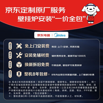 美的(Midea)【销冠单品】燃气壁挂炉天然气采暖炉家用地暖暖气外观保存完好。安装师傅态度好,实体和网上一样。智能,远程控制,比此前的史密斯老款方便多了。不错!看着挺小巧的,起码比旧的要小,安装师傅很耐心,上门也很快,由于煤气管道不适合只有等待煤气公司安装完后再试机了,但愿没问题?送货快,安装快,材料成本低,价格便宜,师傅安装完成后测试一切正常才离开,非常赞。
