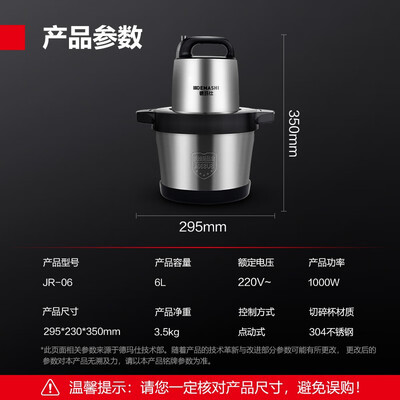 商品名称:德玛仕(DEMASHI) 绞肉机家用商用电动大容量搅拌机大功率不锈钢碎肉机绞馅机多功能料理机绞肉馅机 升级款【6升大容量丨2套刀组】JR-06