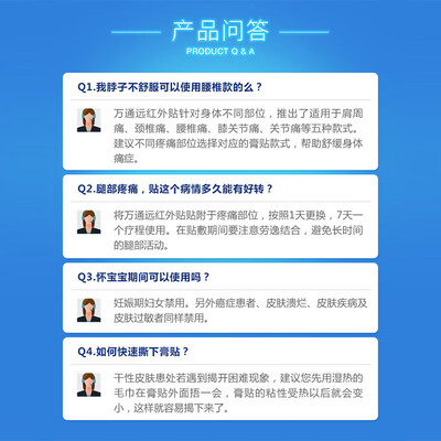 万通筋骨贴腰椎间盘突出腰肌劳损肩周炎膏贴膝盖疼肩颈腰腿专用之前腰一直非常的疼,一直想买一款膏药,千挑万选选了这款,果然不服我所望,质量非常的好,贴了之后腰部疼痛改善非常明显,已经用完一个疗程了,大家可以放心地买。用了好几种膏药,万通的还是好用,价格还实惠,还送了一盒艾草贴,喷雾也是效果明显,喷上立马就会有感觉,使用也方便,要坚持用物流很快,包装的完好无损,质量没有任何问题。多大的手机已经迫不及待的去使用它了,感觉用完很舒服,整个人都很轻松,用完了之后的效果感觉是好,改善了很多。顺便也给妈妈用了一些,她也感觉改善了不少。我们后续还会回购。比实体店的要划算,是正品。家人们放心去使用吧。过年期间,老妈忙活的有些腰酸背痛的,就买了这款万通筋骨贴,使用一下试试效果。看评价和广告,效果应该是很不错,希望能改善老妈的颈肩疼痛,一次性买了5盒试一下,效果好得很,再回购。