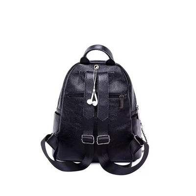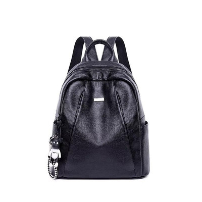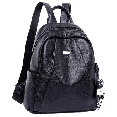商品名称:【真牛皮女包\/小熊挂饰】黛慧妮真牛皮双肩包女2021新款双肩背包潮韩版学院风背包时尚百搭女士简约 黑色【牛皮+挂件】D803