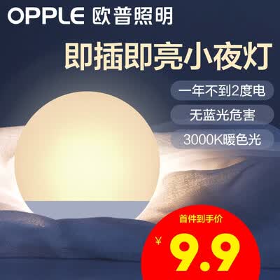 欧普照明(OPPLE) 智能感应小夜灯USB充电卧室床头节能led台灯护眼婴儿宝宝喂奶 【插电款】按压开关到手价格9.9元。
