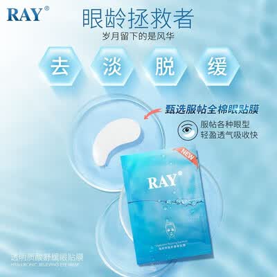 RAY眼膜很好的产品,富含透明质酸。清凉舒爽,保湿养护,有效舒缓眼周幼嫩肌肤改善干燥。用完之后眼睛很舒服,特别有时候长期看手机玩手机以后用这个很舒服,有效缓解黑眼圈。非常方便非常好用已经用完两盒啦还会继续坚持贴!眼膜不错,日期新鲜,用过很多盒了,蛮好的,很舒服。试用中到的,很不错,贴在脸上润润的,期待好效果