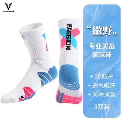 维动(VEIDOORN) 实战篮球袜子毛巾底运动精英男女中筒高帮长筒加厚撒野篮球袜 蓝粉【三双装】到手价格36.8元。