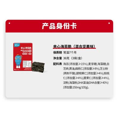 商品名称:英氏【139选6】儿童宝宝零食组合 米饼泡芙溶豆DHA鳕鱼肠海苔脆 夹心海苔脆(混合坚果)