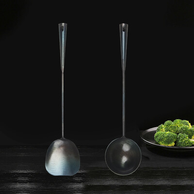 商品名称:臻三环手工锻打熟铁制作家用手工长柄铁锅厨师锅铲子厨房锅铲汤菜勺子 铲勺套装