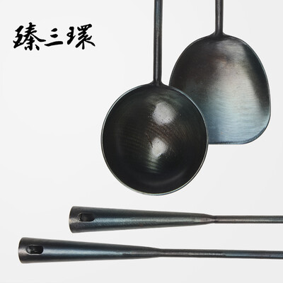 臻三环手工锻打熟铁制作家用手工长柄铁锅厨师锅铲子厨房锅铲汤菜勺子 铲勺套装到手价格119.0元。