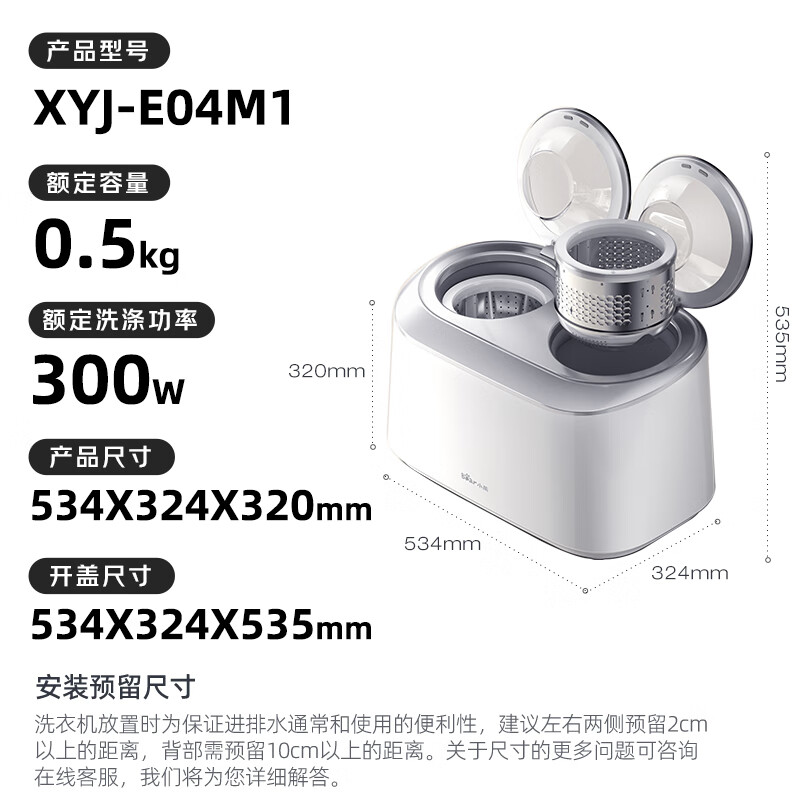 外形外观:大气美观上档次白色干净好看,尺寸非常好的。洗净效果:非常好,省水干净快捷。除菌效果:也很满意容量大小:非常合适,洗衣机安装完成,颜值很好,脱水很安静,系列值得拥有,带来精智生活,其他东西慢慢测试。洗衣机小熊XYJ-E04M1真不错?这款洗衣机容量大,洗衣效果好,省时省力。一键洗脱功能很实用,防缠绕设计也很贴心,再也不用担心衣服缠在一起了!洗衣机收到了,质量很好,包装严实,物流很快,洗衣机很好用,已经推荐给朋友们了,非常满意从年前开始,家里所有更新换代的洗衣机都是的,质量有保证!年前旧机到现在还在用,这次是趁着双十一活动买给姑姑家,很满意!