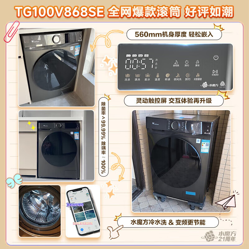小天鹅TG100V868SE洗衣机公斤大容量,可以洗厚衣服、窗帘、被单,不用再费力了,送货速度也快,功能可以选智能,也可以手动设置,符合使用需求。洗衣机收到了,功能齐全也很方便,触屏的也很灵敏,噪音也不大,外观设计非常高级,太满意了外形外观:很好看,容量大小:很大,看货很喜欢,比想的效果更好,客服人也很好,不停给解答,送货师傅态度也很好,安装师傅也很好烘干的衣服味道很刺鼻,洗净效果:不行,普通的油渍都洗不到除菌效果:一般外形外观:还可以京东活动价买的,然后家里觉得非常划算,京东的活动也非常多,所有的电器都在京东买一个调理,他有 年的幻想。如果当初呢稍微。
