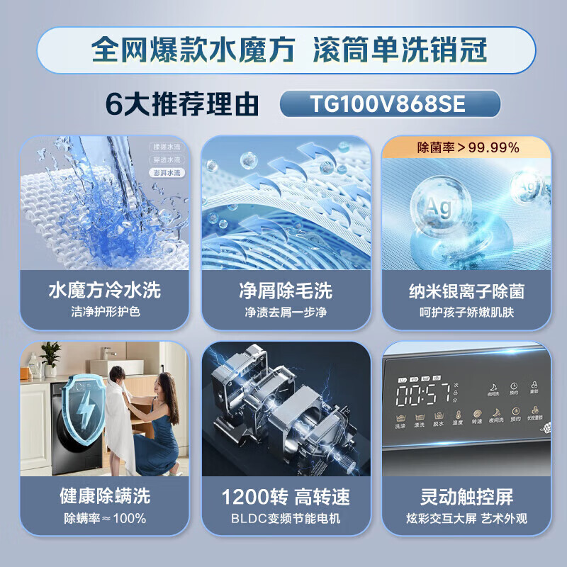 筒自洁,脱水功能,夜间洗,预约功能,中途添衣,除菌功能