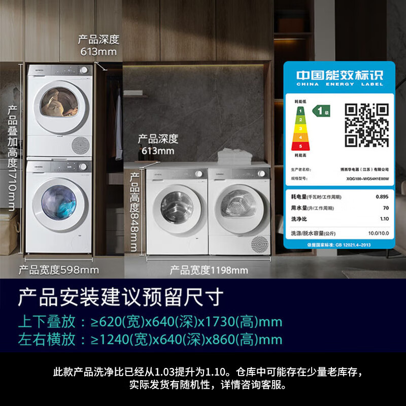二、西门子XQG100-WG54H1E00W小晶钻超氧版Pro产品参数: