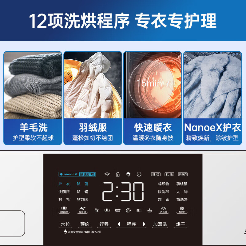松下(Panasonic)12公斤滚筒洗衣机全自动洗烘一体大容量纳诺怡护理光动银除菌水氧泡沫净智能投放 XQG120-ND2Z5到手价格6999元。