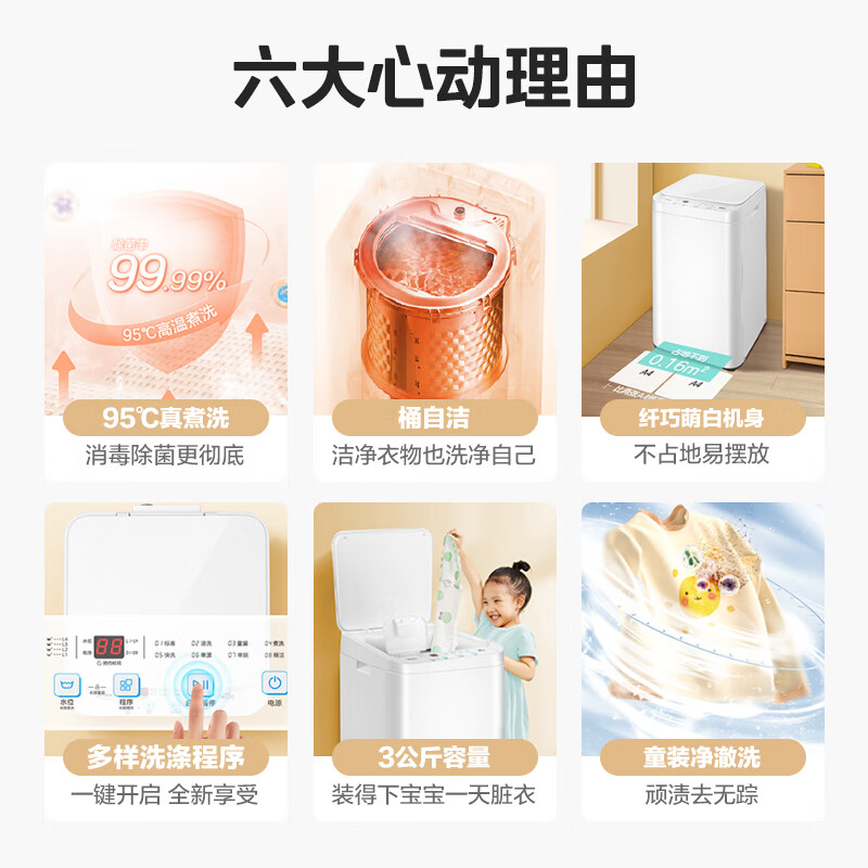 美的(Midea)迷你洗衣机 MB30VH21E 3KG婴儿小型儿童内衣洗衣机 全自动波轮 高温除菌除螨宿舍 以旧换新 到手价格648.99元。