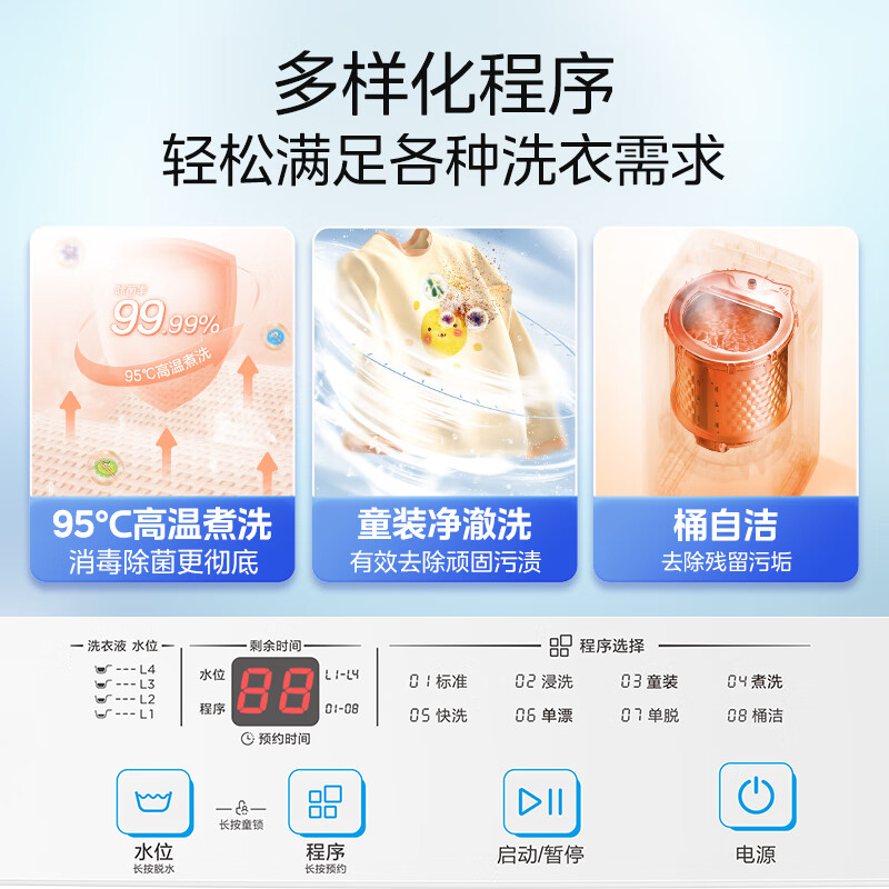 美的MB30VH21E外观很轻巧,美观大方。立即使用,波轮劲很大,容量也够大,洗出衣服很干净,甩干容量也可以,甩干声音很小,操作起来简单,易会。收到试用了很好,声音很小,还是洗的羽绒服,洗了很干净,超级值得购买。物流也很给力哦,赞?外观很简洁,容量大,除菌效果不错性价比极高,使用寿命很长,的洗衣机算是属于国产小众品牌但是质量这方面没得说,值得推荐!洗衣机收到,外观很漂亮,试洗了一下,非常好用,不抖动除菌效果很好噪音小洗衣机。值得信赖外形外观:外观很漂亮。洗净效果:洗涤效果非常好。除菌效果:应该是有除菌效果的。容量大小:容量很大。非常喜欢方便实用。
