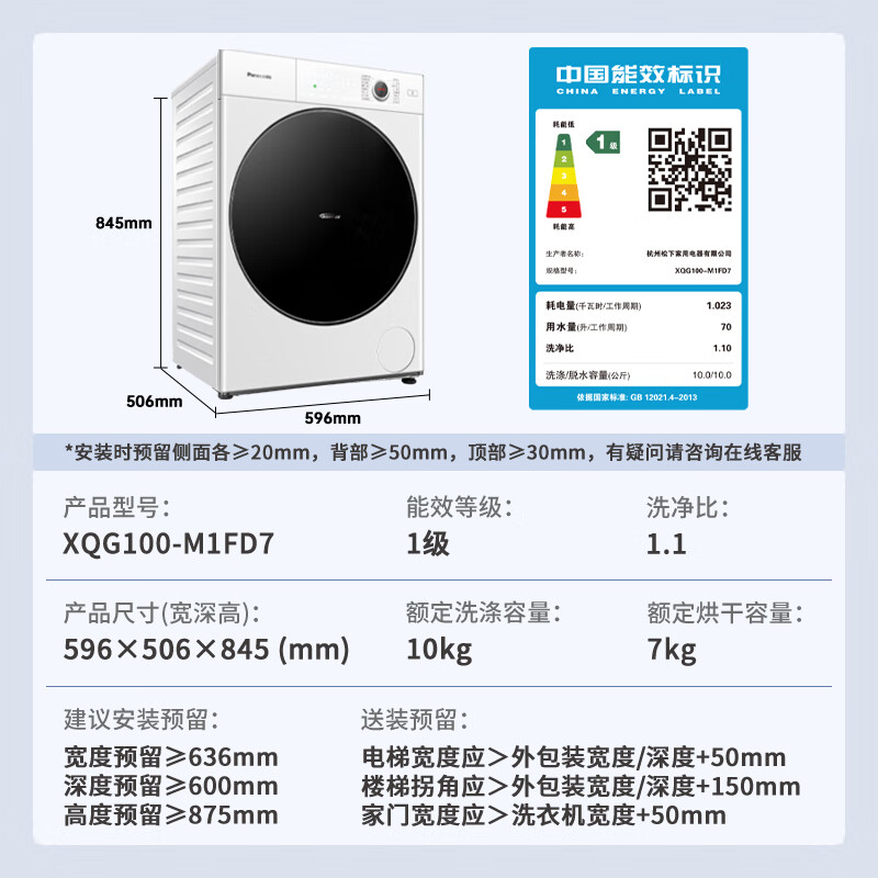 二、松下XQG100-M1FD7产品参数:
