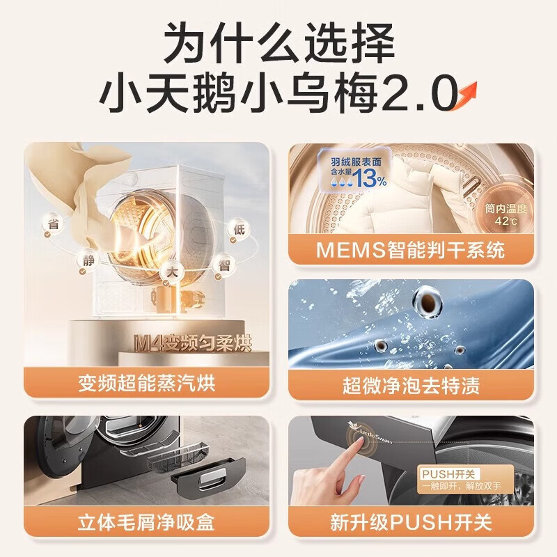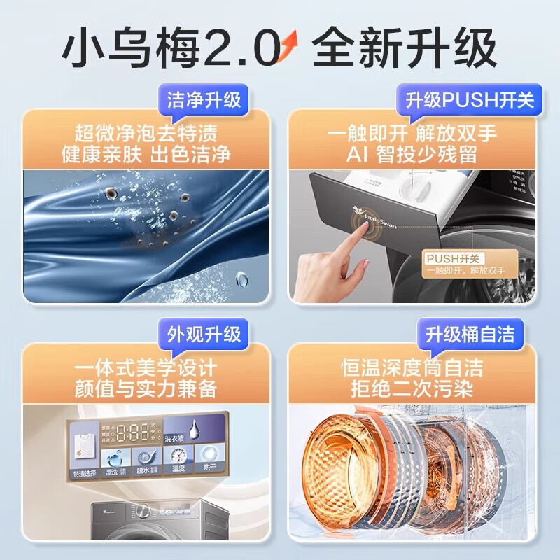 小天鹅(LittleSwan)小乌梅2.0洗烘套装 家用大容量双变频洗烘以旧换新家电国家补贴20%超微净泡超薄全嵌家居美学到手价格9499元。