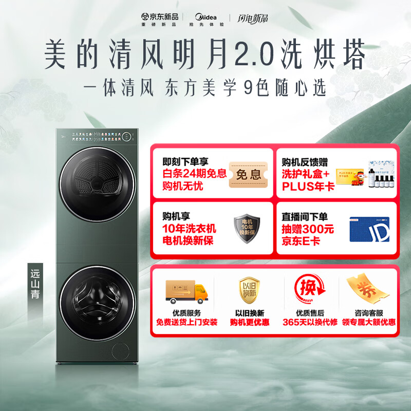 美的(Midea)洗烘套装 10KG滚筒洗衣机+全变频热泵烘干机【清风明月2.0洗烘塔】MGH20A-G+MAX纯平全嵌 国家补贴到手价格8999元。