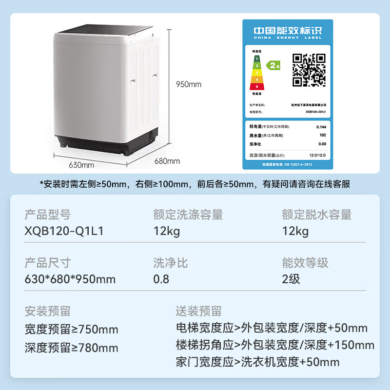 二、松下XQB120-Q1L1产品参数: