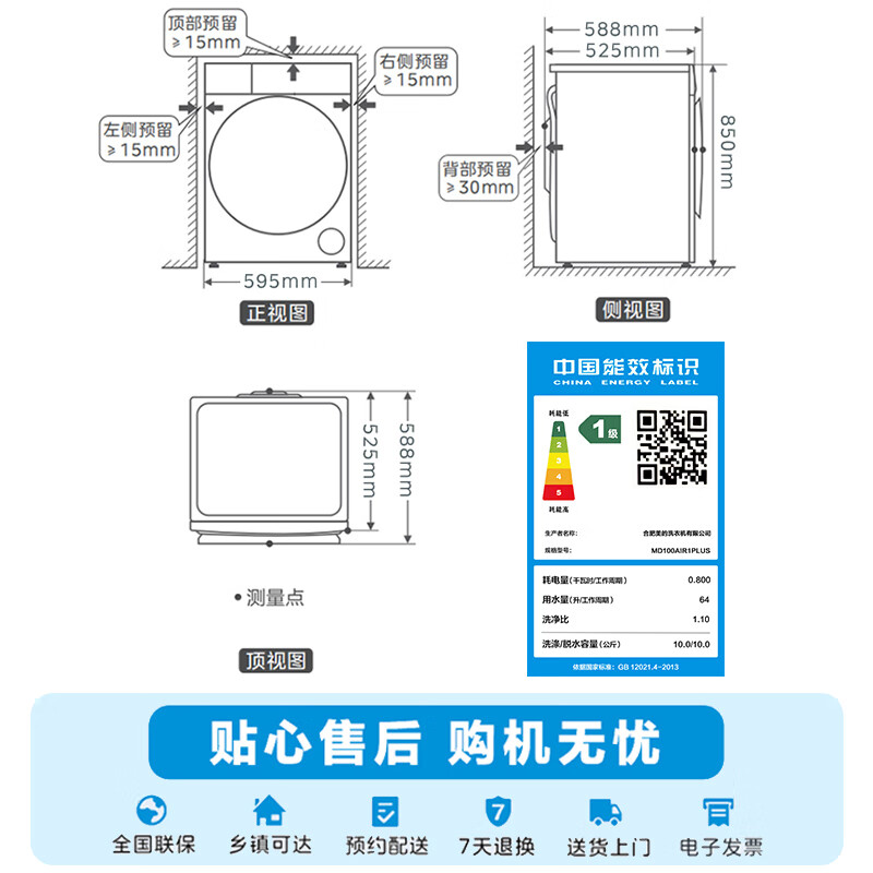 美的MD100AIR1PLUS外形外观:一人可以搬动加安装底部挡鼠板洗净效果:用了两次还不错容量大小:成人一条裤子一件外套四五件单薄衣物可以一次性洗外形外观:还不错留的位置刚刚好洗净效果:声音不算大还不错容量大小:刚好洗一家人的衣服一直没评价,用了几周。感觉还不错。孩子校服刚洗就通知第二天要穿,直接烘干了。虽然用的次数少,但是有需要你一点不用慌。刚开始因为送货晚了两天还挺不愉快,好在安装师傅在收到货后很快就来安装了,及时用上了。真的很好用,性价比超高,洗被套都完全 终于可以解放双手啦,洗的很干净,特别是洗筒里的滤网比之前的老式的好用很多,很方便