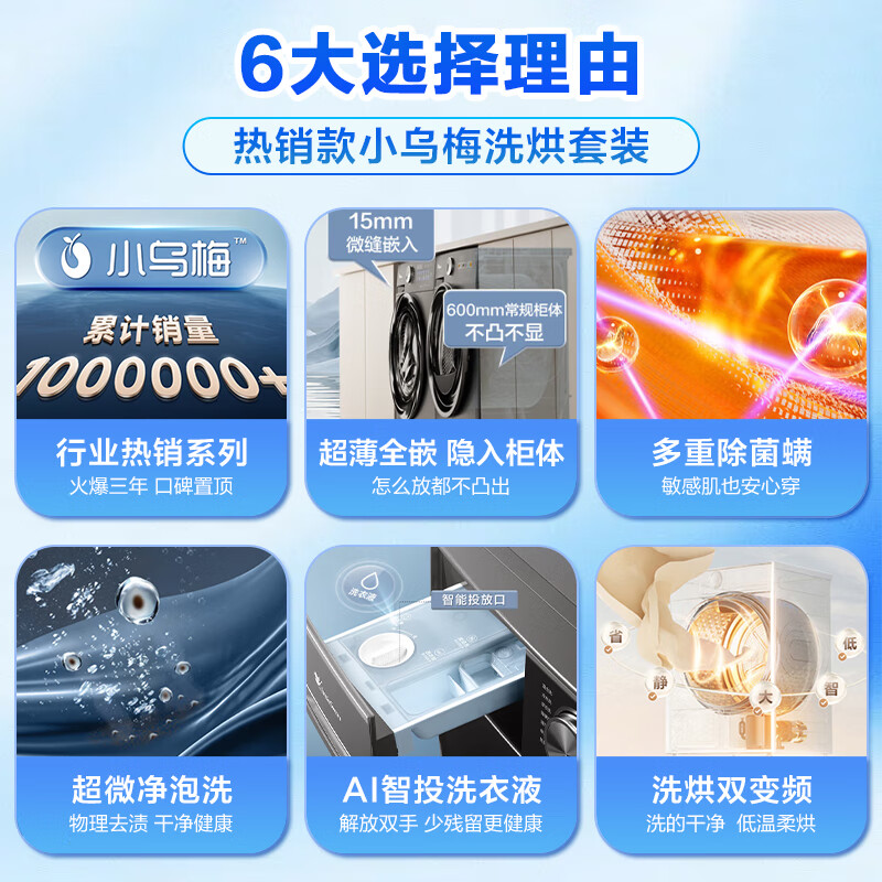 小天鹅(LittleSwan)小乌梅洗烘套装全自动滚筒洗衣机+热泵烘干机TG100SC83+TH100VH83MAX家用大容量超薄全嵌到手价格8264.05元。