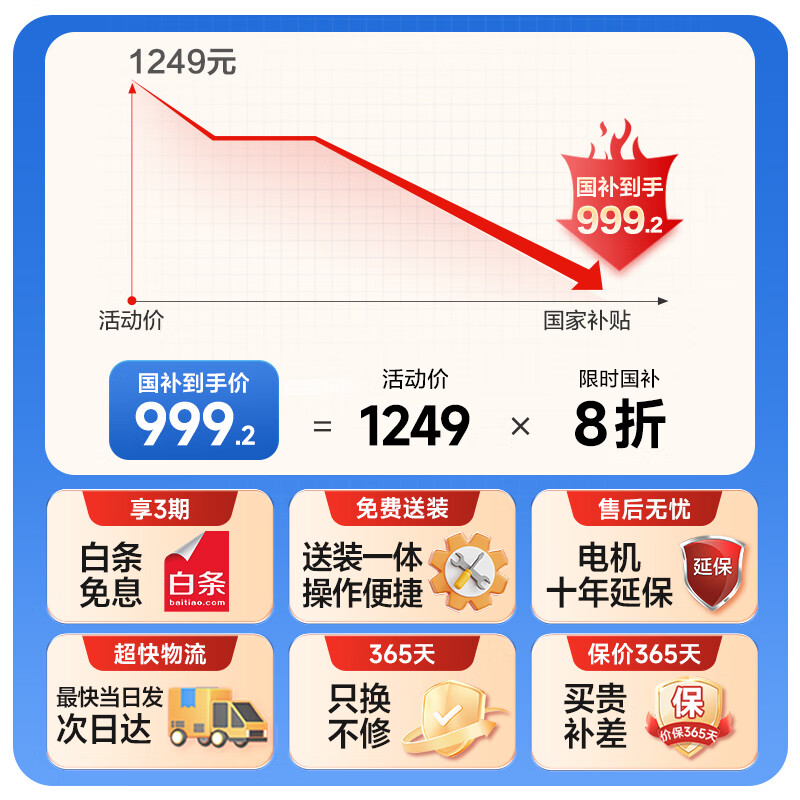 小天鹅(LittleSwan)洗衣机滚筒全自动家用10公斤超薄大容量懒人一级能效 1.1洗净比以旧换新国家补贴20% TG100V23PRO到手价格1469元。