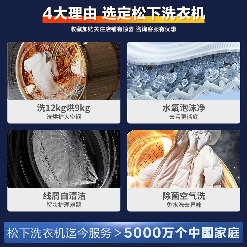 松下(Panasonic)滚筒洗衣机全自动带烘干 洗烘一体水氧泡沫净除菌NDW15超薄12公斤家电国家补贴到手价格6499元。