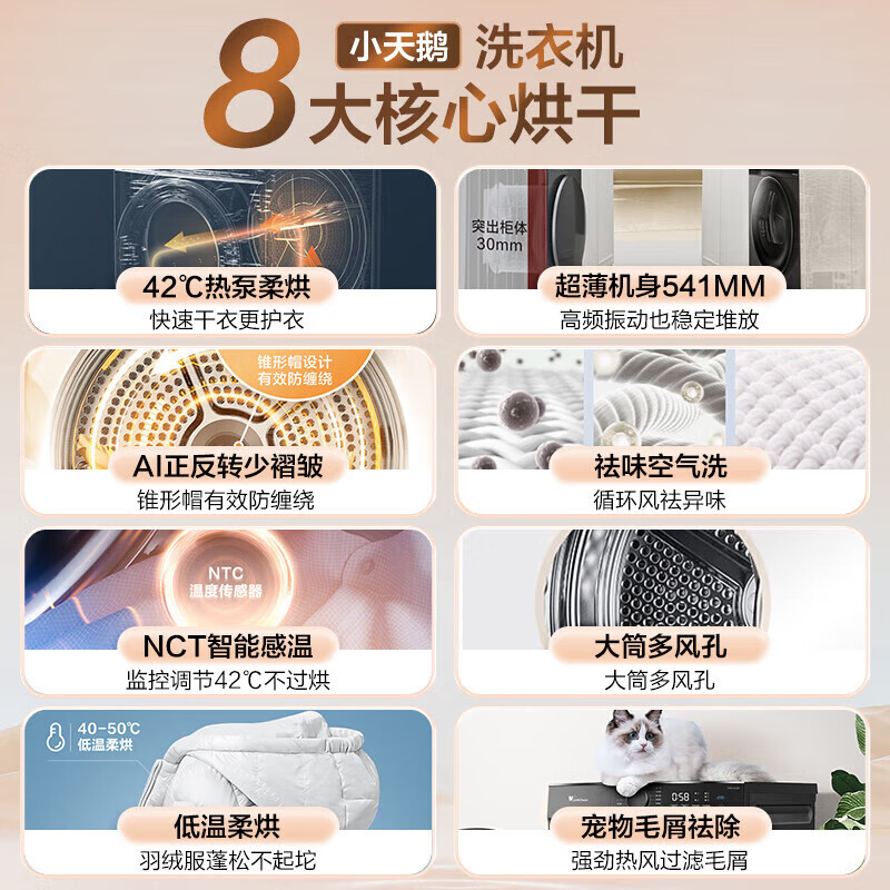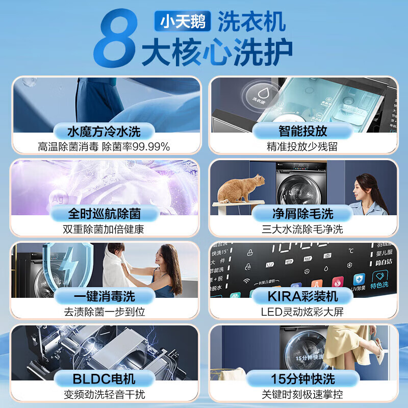 电辅加热烘干,智能投放,烘干/风干,空气洗,预约功能,中途添衣,Wi-Fi连接