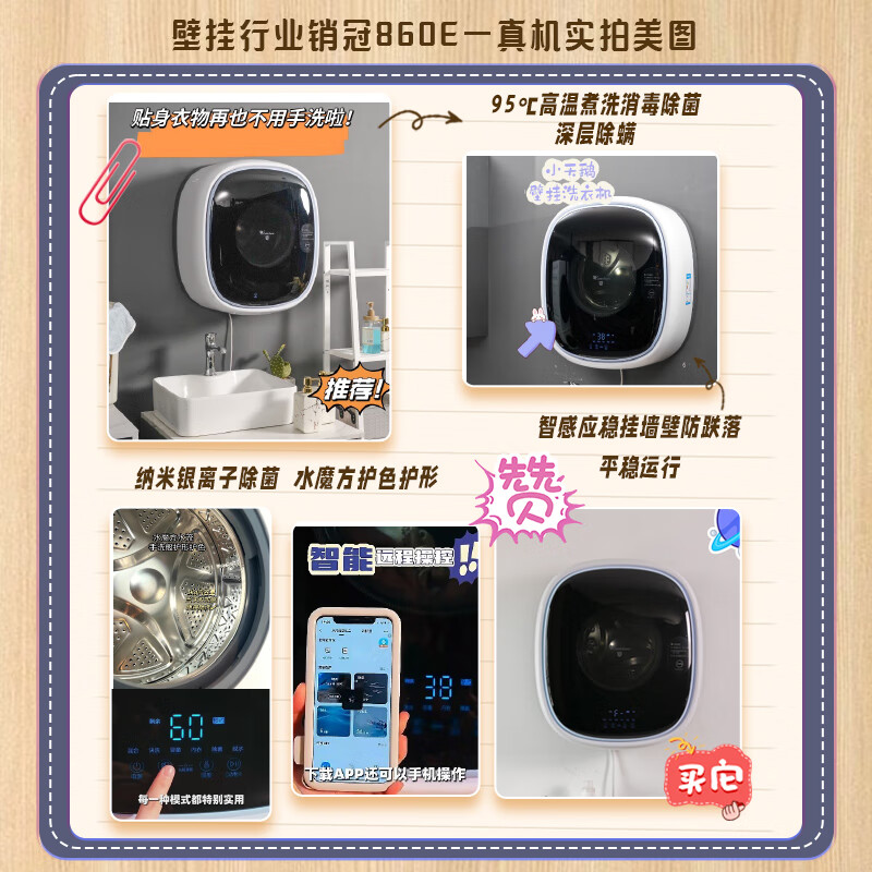 洗衣机小天鹅TG30V860E哪个好?区别大不大?其实这款小天鹅(LittleSwan)3公斤壁挂 迷你洗衣机全自动 内衣裤洗衣机 【小海绵1.0】婴儿挂壁式 水魔方 高温除菌 TG30V860E的确是蛮不错的哈,精致的外观造型,做工讲究,有一些网友想要了解这小天鹅TG30V860E怎么样?质量好吗?说实话这个洗衣机小天鹅TG30V860E使用过一段时间后个人觉得可以的,我自己也是才购买不久的,京东购物很快,昨天收到货,今天师傅来安装,外形颜色成稳大气,同样的尺寸,容量比我以前买的多了公斤(现在公斤)。试了一下,一般洗衣震动的声音较轻,洗衣干净度,杀菌等无法一次说明。此款还带烘干功能,期待以后有更好体验,质量杠杠的。顺便说一下,送货小哥不怕辛苦,一个人把洗衣机送上送下的走五楼,没有怨言,谢谢! 洗衣机小天鹅TG30V860E收到马上就开始洗,很方便,外形外观:精致洗净效果:洗衣效果很好除菌效果:除菌效果不错容量大小:出租屋用合适!值得推荐! 到货有几天了,今天看了一下很不错,小巧不占地方,经济实用,而且功能齐全,非常不错的选择 性价比很不错,政府补贴价格下来更香,还在安装中,有基本的功能就可以了,很多功能用不到了,摆在那里好看而已了。值得购买。 外形外观:外观大气,很耐看;洗净效果:效果不错,满足自己的需求容量大小:足够使用了。