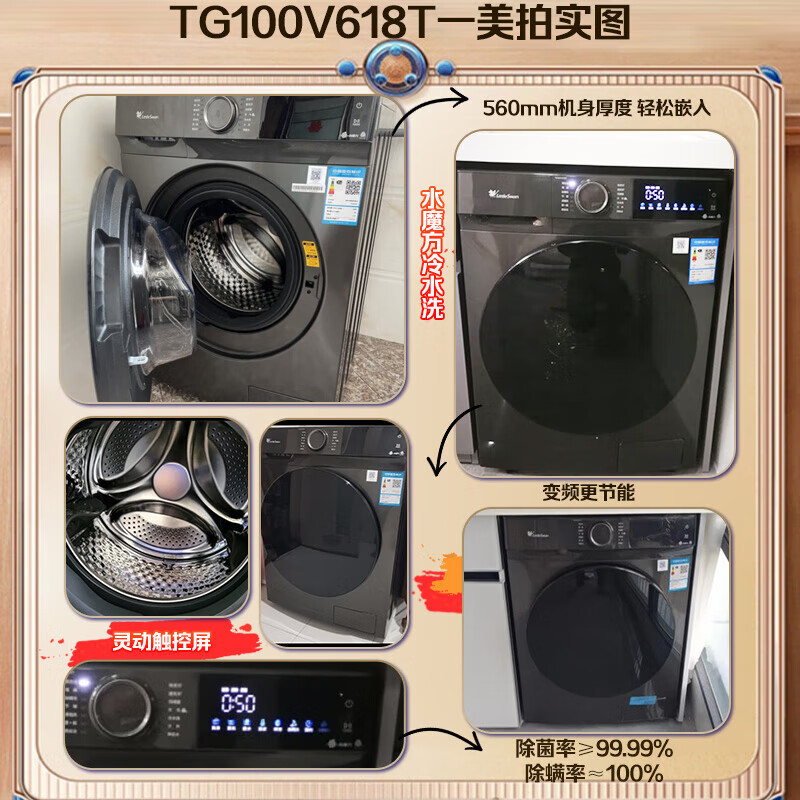 立刻改变,非常合适,两个人共享空间很宽敞,设计得很好,就是说度的温度随时增加,没事,品牌买了很多,适合突出日常使用。外形外观:不错,挺好看的,容量大小:容量大,能洗好多衣服洗净效果:洗的干净,经济实惠洗衣机小天鹅TG100V618T一直想买这台洗衣机,非常实用,解放双手,洗小件用上面的,洗大件用下面的,颜值高,质量好,功能多,是在是节省了好多时间。很好的一次购物体验,洗衣机很不错,价格合理功能齐全,清洗噪音很小!外形外观:外观时尚已经是第二次购买了,还推荐给朋友买了一台,小巧方便,很好用,解放双手,衣服洗的很干净,甩的也很干,拿出来随便晾晾就可以穿啦