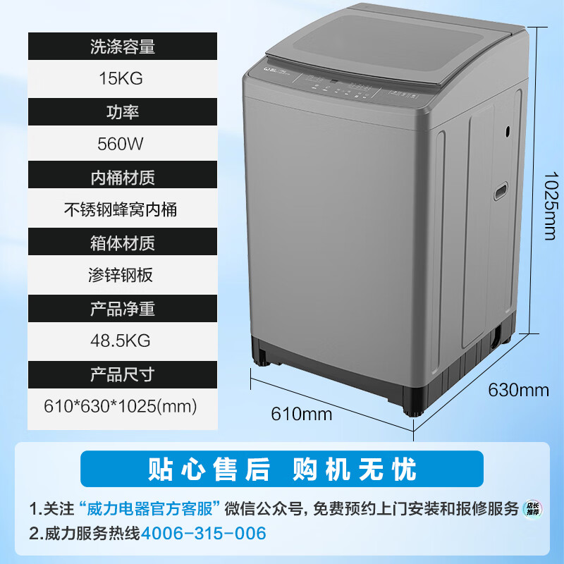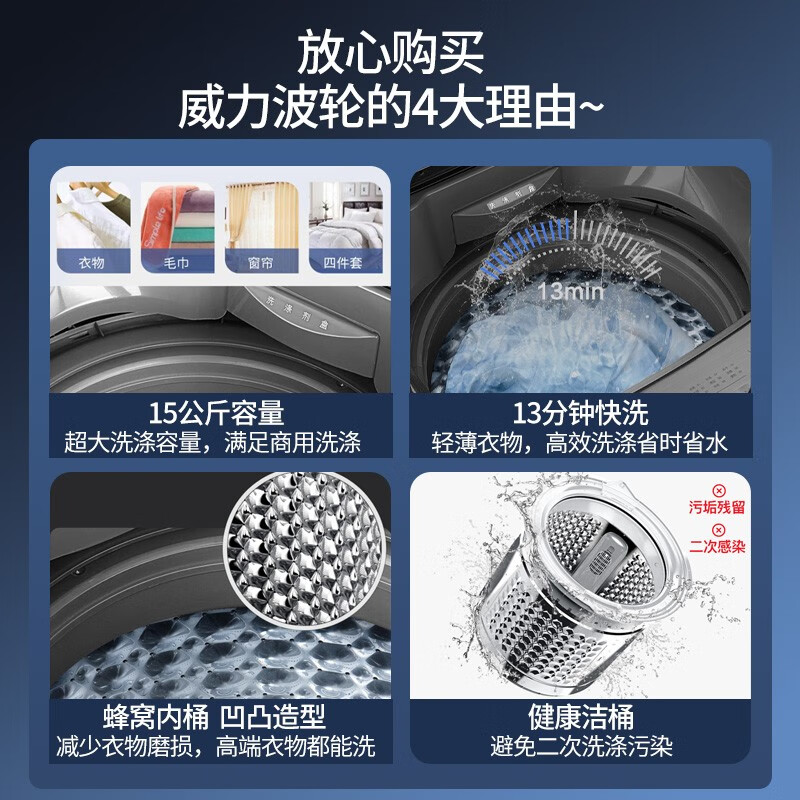 威力(WEILI)15公斤 波轮洗衣机全自动 大容量家用 量衣判水 护衣防缠绕 耐腐箱体优质电机 XQB150-2119X小毛毯到手价格1790.1元。