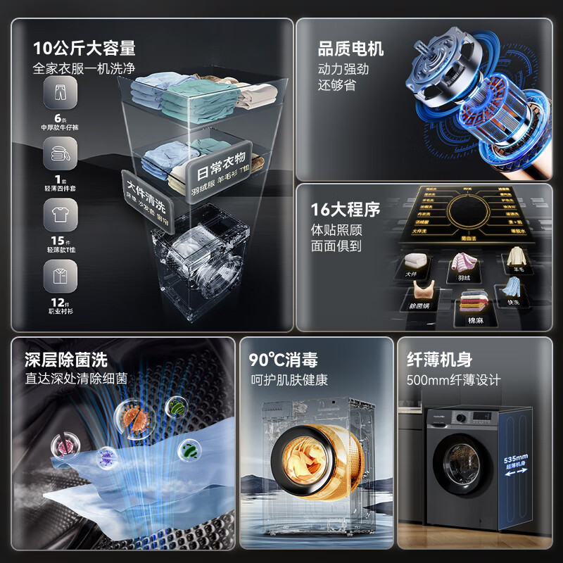 荣事达ERFC105020W超薄的洗衣机真的 ,外形好看,让原本的卫生间空间变大了,非常推荐,分钟快洗适合夏天的衣服,推荐给洗衣机空间不大的家庭呦。这款洗衣机容量非常的大,洗衣服一家五口非常的方便,操作简单,洗的很干净。非常值得推荐。洗净效果:洗的特别干净,我专门买来洗小孩衣服的,干净又好用除菌效果:还不错洗完香香的容量大小:可以洗小孩衣服被子挺大的东西收到相当满意,大小正合适,深度也够用外形外观:满意,很有质感容量大小:容量大小正好洗衣机收到很久了,也用了一段时间,感觉不错,来给个好评,祝它大卖,好的东西就是就要有好的宣传,就是要很多人人一起拥有它。