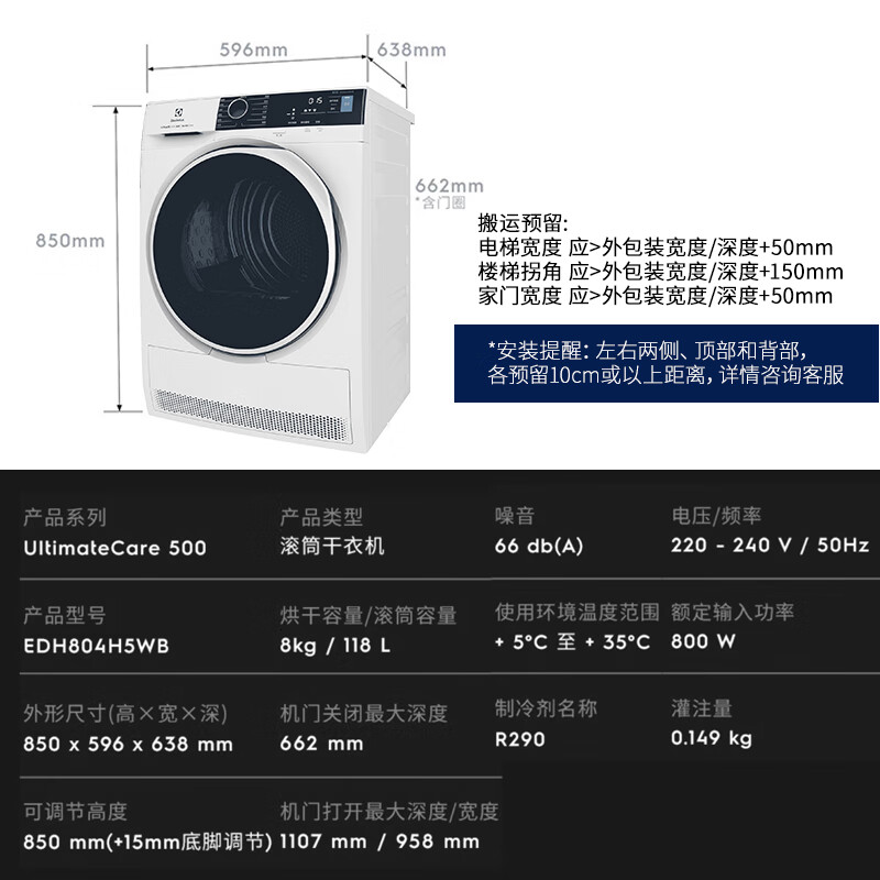 伊莱克斯洗烘套装原装进口全自动变频滚筒10公斤洗衣机8公斤热泵干衣机EWF1024P5WB+EDH804H5WB到手价格9990元。