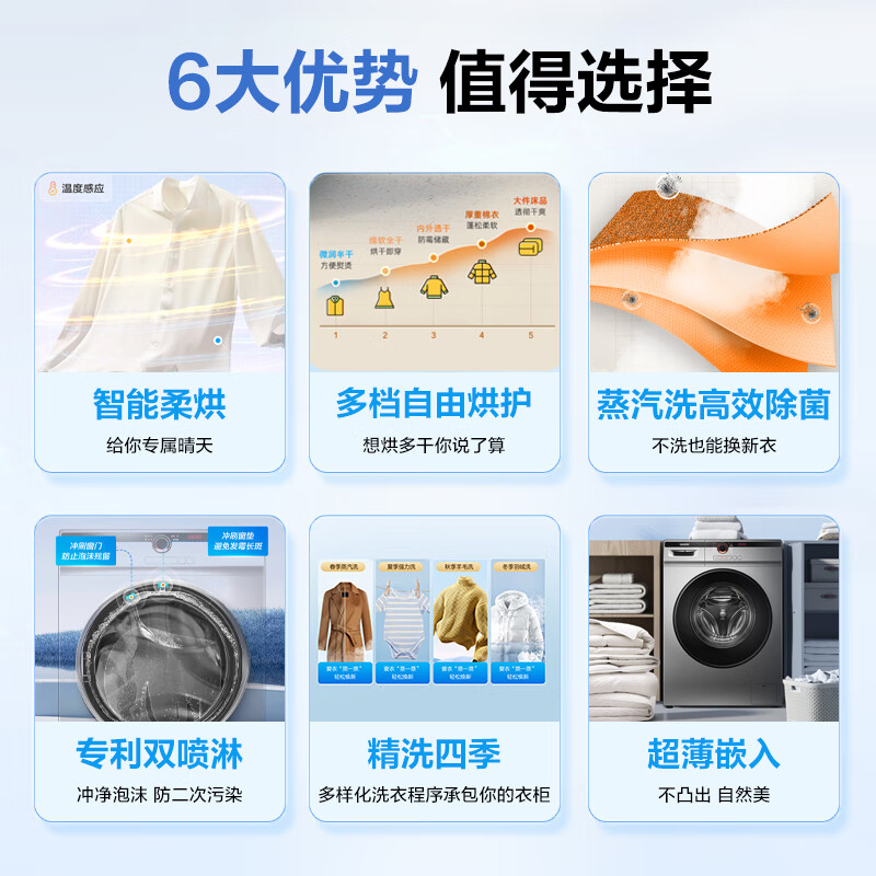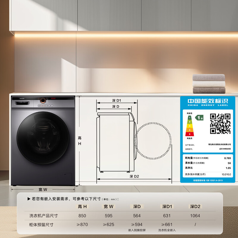 统帅(Leader)海尔智家出品 滚筒洗衣机全自动 10公斤超薄洗烘一体 以旧换新 家电国家补贴 @G10HB22SE到手价格1799元。