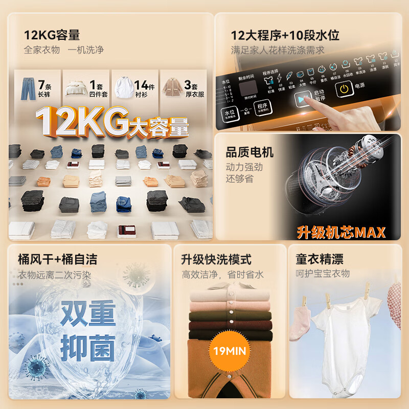 荣事达(Royalstar)洗衣机 12公斤全自动波轮大容量家用脱水机甩干机洗衣机 以旧换新 深灰色 RB12030J到手价格799元。