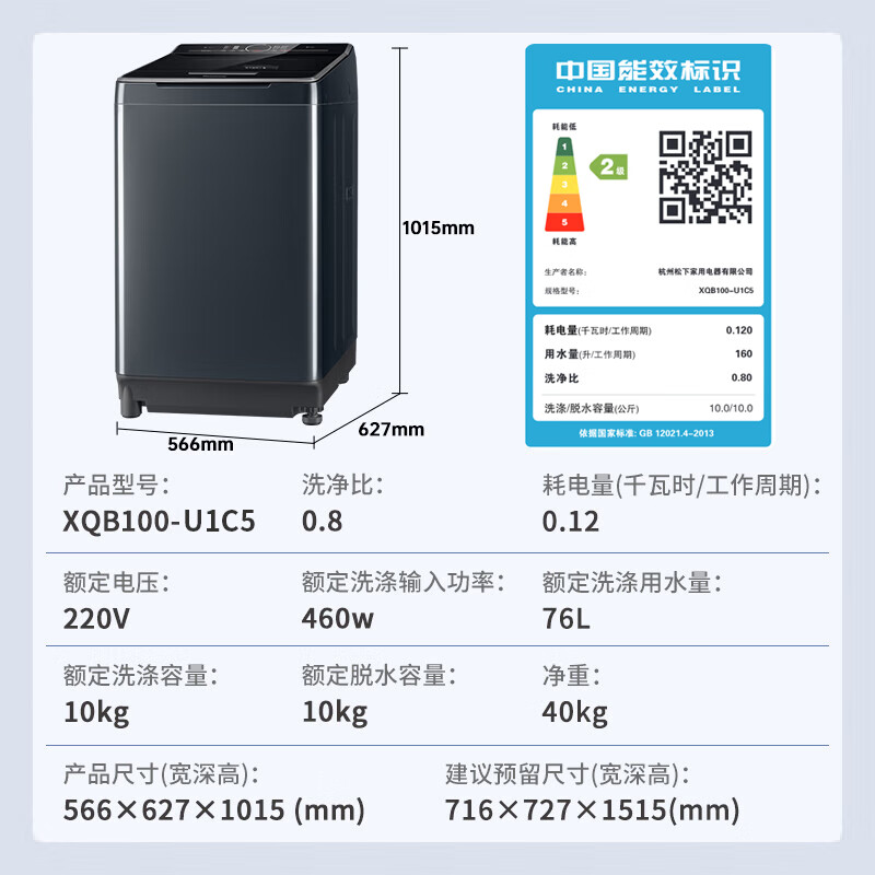 松下XQB100-U1C5洗衣机超薄,原来只能放公斤的地方,现在可以放公斤的,噪音比之前的洗衣机小,外观漂亮,衣服也洗的干净,感觉很不错,值得买。选了几款对比之下,还是选择的,质量好,颜色也好看,发货也很快,比去实体店购买便宜又方便洗衣机好用,洗衣服干净,主要洗衣静音,就是甩干时候有点声音,达到想要的效果!值得推荐,物流也很快第二天就到货,安装也快洗衣机收到了,外观非常好看,安装师傅非常给力,试用了一下洗涤效果也非常好用,没有什么噪音双十一买的,颜值高声音小衣服洗的也干净,家里得电器都是的外形外观:漂亮洗净效果:干净除菌效果:榜容量大小:打的很十公斤