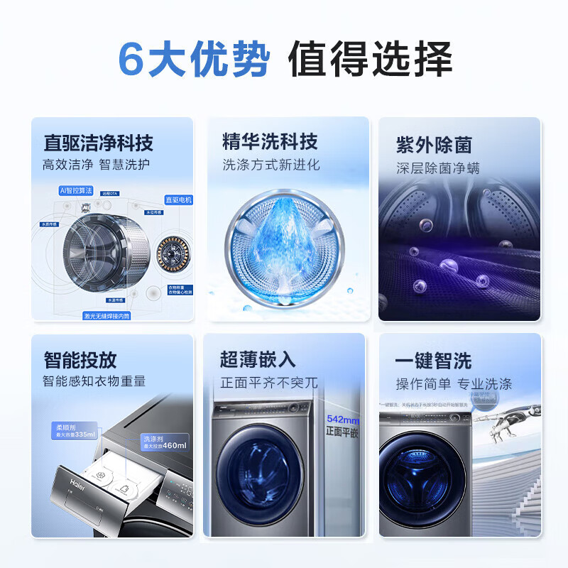千挑万选,选中了这款大容量 很好看 洗的更多,功能性很强 洗烘一体,刚安装好 使用了一下,确实洗的很干净,烘干效果也好!.公斤很适合一个人在外租房使用 师傅直接送货上门安装测试很省心 并且价格比线下便宜很多洗衣机海尔XQG100-BD176PLUSLU1买回来用了好几天了容量够大,主要大件棉套那些都可以一起洗,方便,以前用滚筒式的,现在就试一下这个波轮式的,还是觉得好用的京东送货迅速,洗衣机外观很好看,感觉很有档次,还在使用中,符合预期,有国补补贴,很划算。洗衣机很好用,款式新颖时尚,洗出来的衣服很干净没有异味,容量大够一家人使用,大牌子质量好,售后有保障,价格很实惠,物流快。