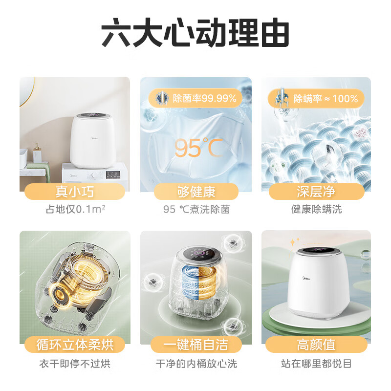 洗衣机美的MND5VD0WE哪个好?有区别没有?这个美的(Midea)迷你波轮洗衣机全自动家用 MND5VD0WE 洗烘一体内衣裤洗衣机小型婴儿 懒人洗衣机 以旧换新蛮可以的哟,华丽的外观造型,做工很讲究,不少网友想要知道这款美的MND5VD0WE怎么样?评价如何?说真心话这洗衣机美的MND5VD0WE使用过一段时间后个人觉得可以的哈,刚买没多久的,之前家里一直用的洗衣机了,年了,还是.的呢,卫生间位置有限,所以这次还是选得超薄的,没想想象中的声音大,很静音,卫生间的门关上都听不到声音,转的够用了,安装人员说了长时间使用机器的大转数,寿命可能短,安装人员很负责,调整了很久水平,机器很稳,声音也小,爱了爱了,重点这个超薄的厚度,真的很香 洗衣机美的MND5VD0WE洗衣机的质量一直都比较稳定,而且这款公斤的机器是自己生产的,质量信得过,不像小型号的机器是别人代工的,一看就塑料感很浓。 外形外观:大气,洗净效果:两个被套轻轻松松不错除菌效果:洗的还很干净,老牌子值得信赖 收到货了,包装的很严实,颜值挺高的,也挺稳当的,刚洗了我家的个床单,洗的挺干净的,甩的也挺干,天好一会就干了,分好评? 颜值美丽,妈妈不喜欢滚筒的洗衣机,特意买的波轮的,安装师傅联系及时,安装仔细认真,满意!