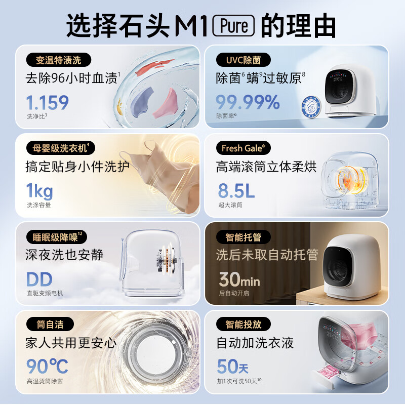 石头迷你洗烘一体机M1 Pure XQGH010RR12【库存售罄 可选购新款M1S系列】到手价格1899元。