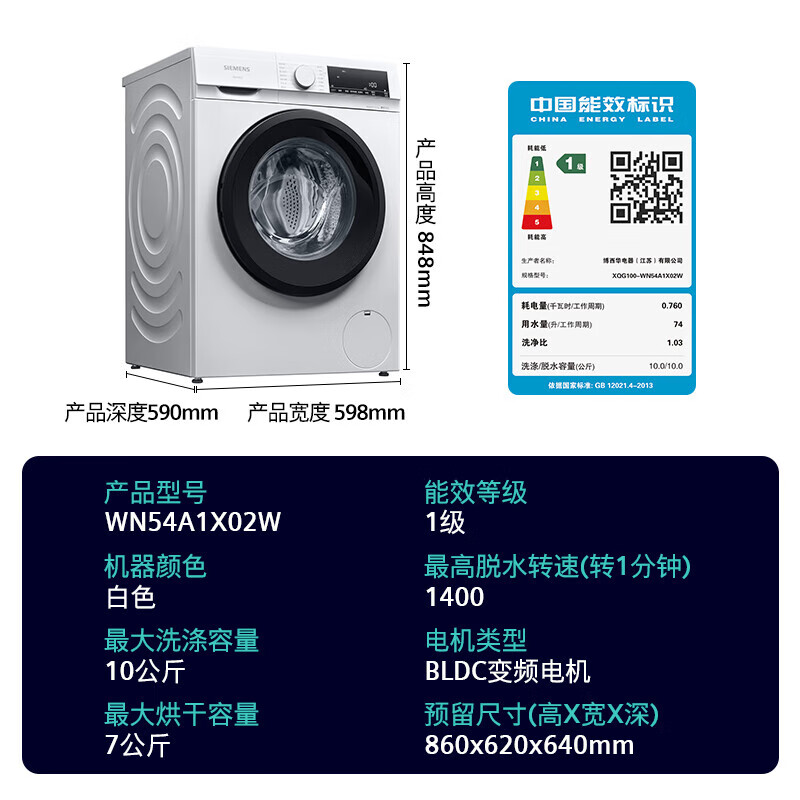 一、西门子XQG100-WN54A1X02W价格参考: