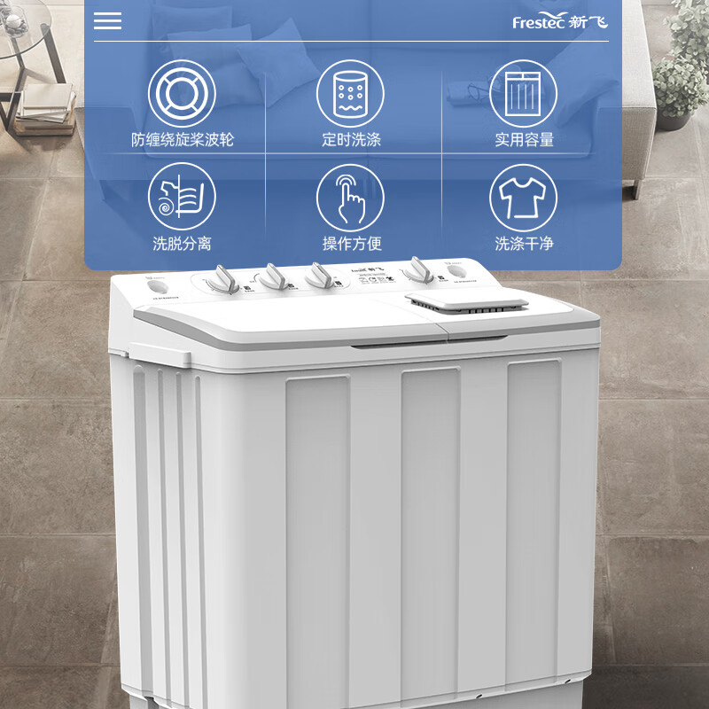 新飞(Frestec)11公斤半自动双缸洗衣机 大容量租房宿舍 快洗快脱 品质电机节能省电 XPB110-1600GD到手价格469元。