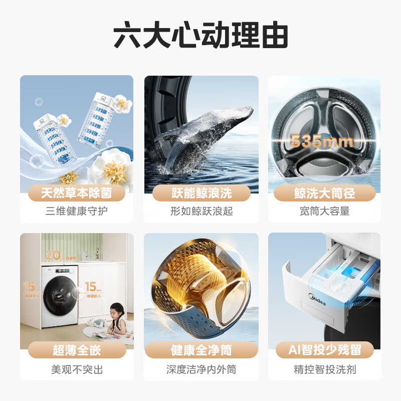 美的(Midea)滚筒洗衣机全自动家用 小白鲸MG100WJ3 10公斤超薄 元气轻氧 超薄全嵌 以旧换新 家电国家补贴20%到手价格2499元。