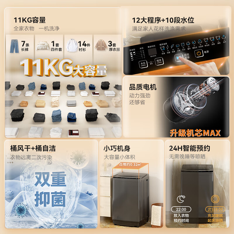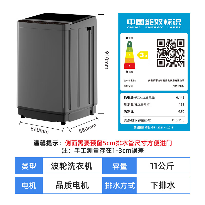 洗衣机荣事达RB11030J哪个好?区别有没有?这个荣事达(Royalstar)洗衣机11公斤全自动波轮大容量家用脱水机宿舍租房可预约洗衣机 以旧换新深灰色 RB11030J蛮可以的哈,成熟大气的造型设计和外观,做工很细腻,有一些网友想要了解这个荣事达RB11030J怎么样?测评如何?说真心话这款洗衣机荣事达RB11030J使用体验后个人感觉蛮可以的,刚购买没多久的,功能方面太实用了!智投系统能根据衣物重量自动投放洗涤剂,精准又省心,再也不用担心泡沫残留或用量不足的问题。超微净泡技术通过纳米气泡深入纤维去污,洗得干净且减少洗涤剂残留,连真丝、羊毛这类娇贵面料都能轻松应对。冷水洗技术无需加热,三大水流模式轻松瓦解污渍,还能保护衣物颜色和形状,洗后柔软蓬松。 洗衣机荣事达RB11030J买来给家里的宝宝洗衣服的,非常的方便,而且占地空间非常的小,很省空间用起来特别好用的衣服很干净,性价比很高,推荐大家购买 当天下单,第三天就到了,速度还是挺快的,安装工人安装也及时,比实体店便宜很多呢!不错 洗衣机目前用下来很不错。衣服洗的很干净啊,价格又实惠.很方便操作。容量大,衣服一次性能洗好多。买的公斤的,物流也快。 宝贝已经收到了,与客服所描述的一致,洗衣机容量很大,而且声音很小,很平稳,值得推荐!