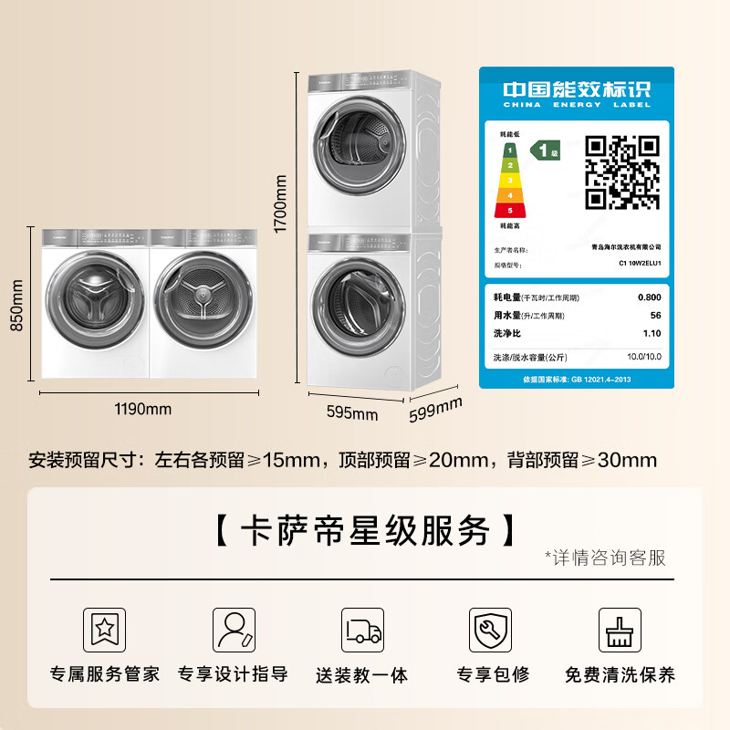 一、卡萨帝C1 10W2ELU1+ECGS10FW2EU1价格参考:
