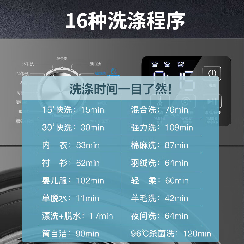 儿童安全锁,防缠绕,空气洗,筒自洁,脱水功能,夜间洗,中途添衣