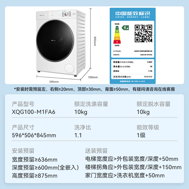 洗衣机松下XQG100-M1FA6哪个好?有区别吗?其实这款松下(Panasonic)全自动滚筒洗衣机10公斤洗烘一体超薄小薄荷SD纳诺怡护理水氧泡沫净智能投放XQG100-M1FA6国家补贴确实是蛮可以的哟,外观设计很独特,做工非常考究,不少网友想要知道这款松下XQG100-M1FA6怎么样?是品牌吗?实实在在的说这款洗衣机松下XQG100-M1FA6体验过一段时间后个人觉得确实可以的哈,刚入手不久的,非常快速,今天买,明天到,安装效果非常快。天气热的时候再开一下,感觉还行。非常快速,今天买,明天到,安装效果非常快。天气热的时候再开一下,感觉还行。非常快速,今天买,明天到,安装效果非常快。天气热的时候再开一下,感觉还行。非常快速,今天买,明天到,安装效果非常快。天气热的时候再开一下,感觉还行。 洗衣机松下XQG100-M1FA6新到货,一级能效,还不错,还没用,安装师傅试过了没啥问题,一会我在洗衣服试试,京东发货是真的快,昨天下单,今天就到了,神速 容量大小:非常大,洗的很轻松 外观材质:质量满意,外观时尚 配送准时:太快了,醒来就到了 的品牌是我购买的选择之一,洗衣机是买来给宝宝的还看中除螨除菌功能,噪音也比较小,送货师傅还帮扛到三楼,总的来说很满意 公斤大容量,床罩等均能洗;直驱电机,洗涤噪音小;波轮洗涤,洗净度高;一级能效,省电省钱!