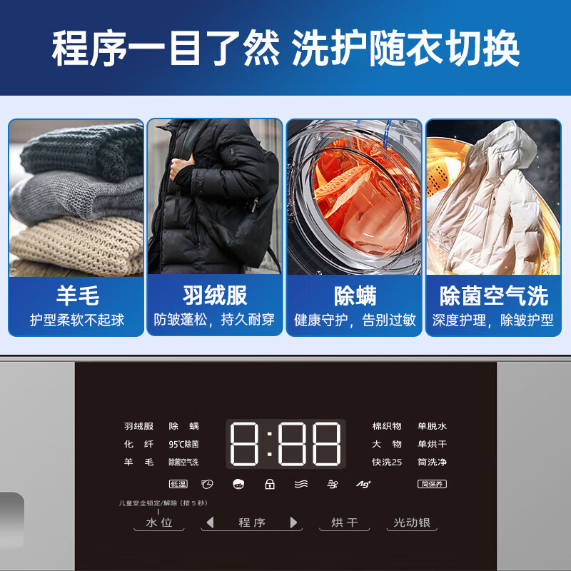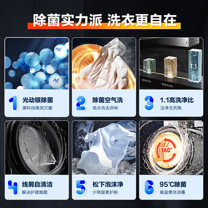 松下(Panasonic)全自动洗衣机滚筒10公斤洗烘一体泡沫净光动银除菌1.1洗净比双极除螨变频XQG100-ND11C国家补贴到手价格3199.2元。